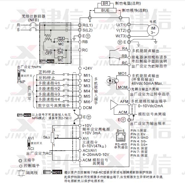 八、臺達(dá)VFD-E變頻器接線注意事項(xiàng):