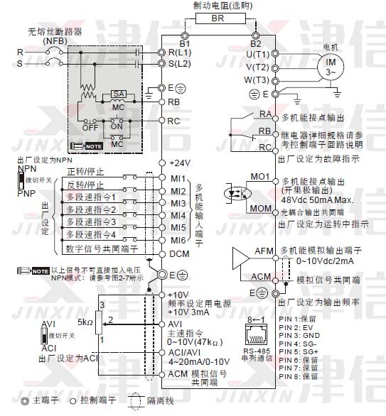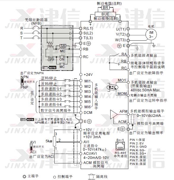 l 控制配線請盡量使用隔離線,端子前的隔離網(wǎng)剝除段請勿露出。