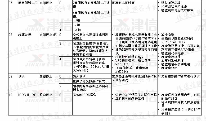 SEW變頻器故障代碼F07,F(xiàn)08,F(xiàn)09,F(xiàn)10,具體如下: